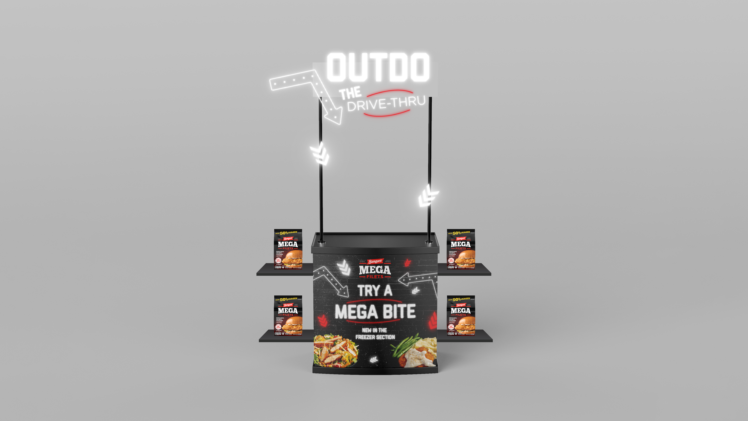 Banquet MEGA upgraded their chicken patty, but with a shrinking consumer appetite for frozen food, shoppers weren’t hungry for it. Through appetizing imagery and craveable copy, our campaign put MEGA back on their menu.