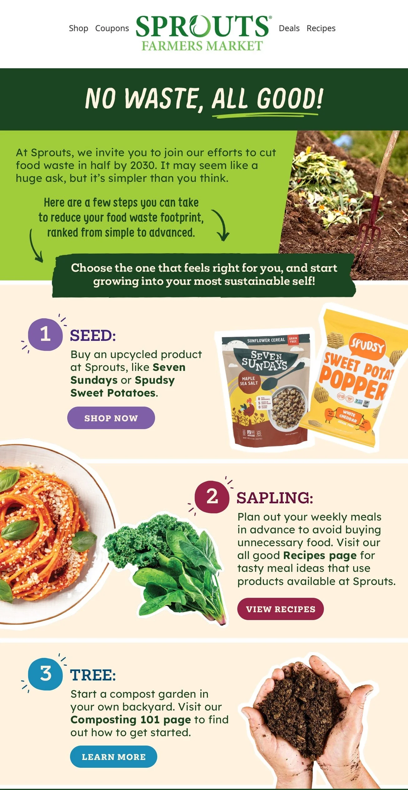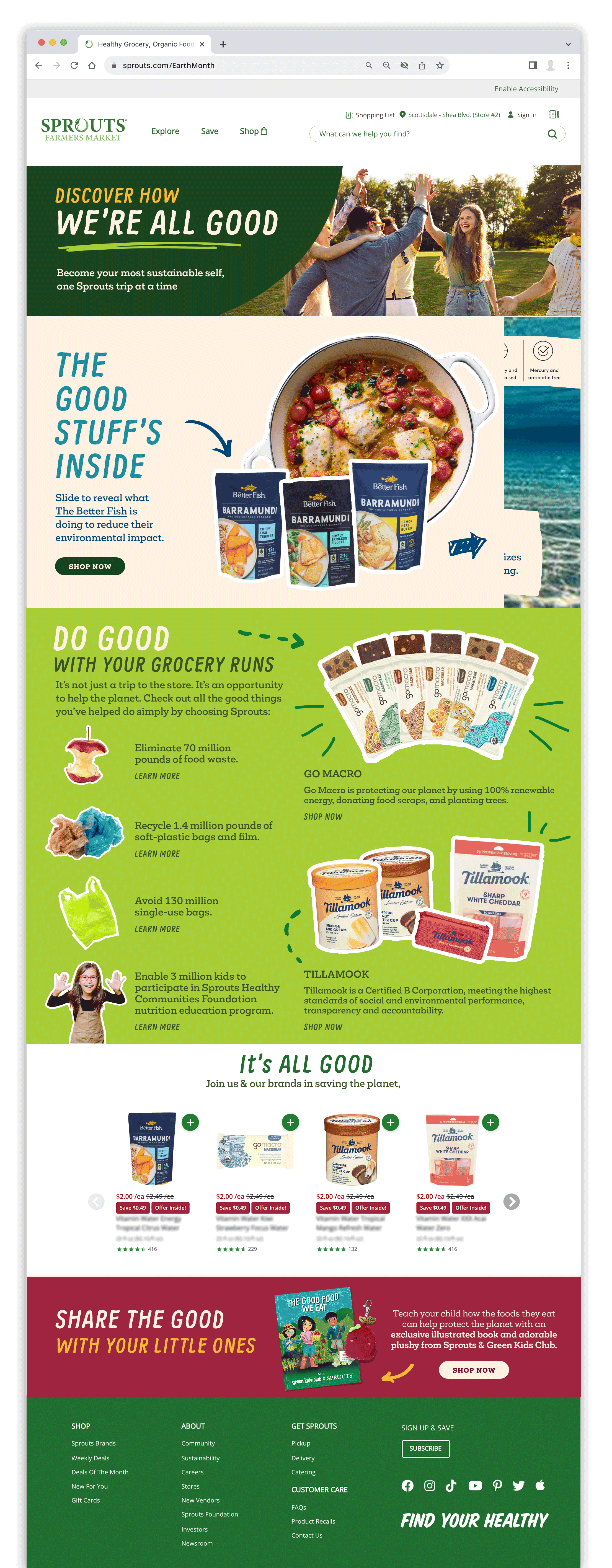 Earth Day campaigns can be gimmicky, but at Sprouts, sustainability isn’t just a once-yearly marketing tactic—it’s the basis of their brand. To promote their genuine commitment to the planet on Earth Day and beyond, we showed shoppers that Sprouts is good all the way through.